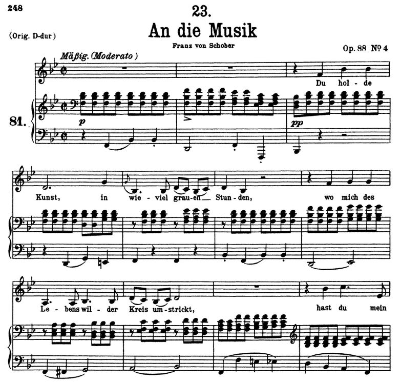 An die Musik D.547, Low Voice in B-Flat Major, F. Schubert. C.F. Peters. A4 Pdf |
