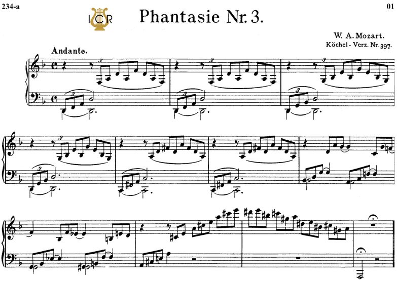 Fantasia No.3, K.397 in D minor, W.A Mozart, Breitkopf Urtext (Landscape) |