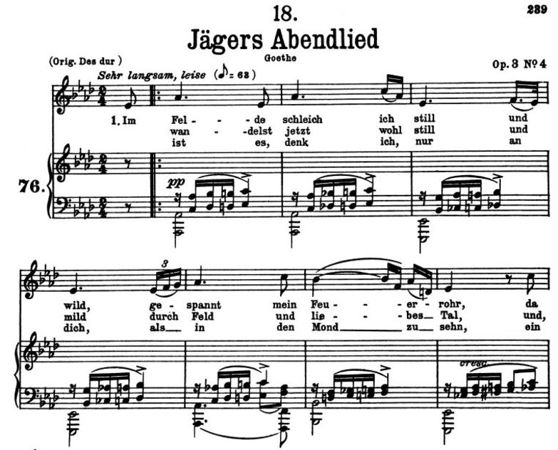 Jägers Abendlied D.368, Low Voice in A-Flat Major, F. Schubert. C.F. Peters. A4 Pdf |