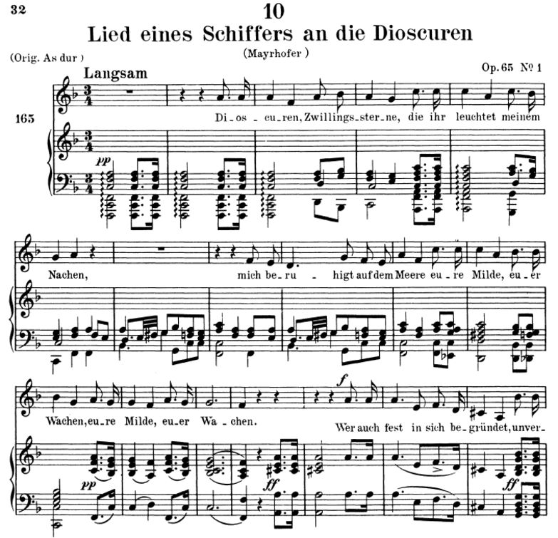 Lied eines Schiffers an die Dioskuren, D.360, Low Voice in F Major, F. Schubert. C.F. Peters. A4 Pdf |