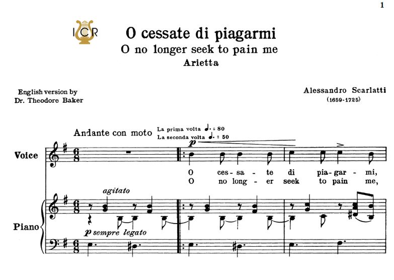 O cessate di piagarmi, Low Voice in E Minor, A.Scarlatti. Schirmer (Landscape) Pdf |