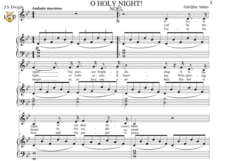 O Holy Night (Noël), Medium Voice in B-Flat Major (Mezzo). A. Adam, J.S. Dwight. A5 (landscape) |