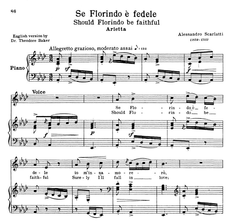 Se Florindo è fedele, Medium Voice in A-Flat Major, A.Scarlatti. Schirmer (A4) Pdf |