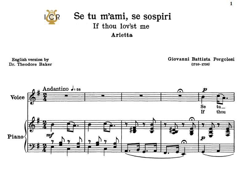 Se tu m'ami, Low Voice in E Minor, G.B.Pergolesi. Schirmer Landscape Pdf |